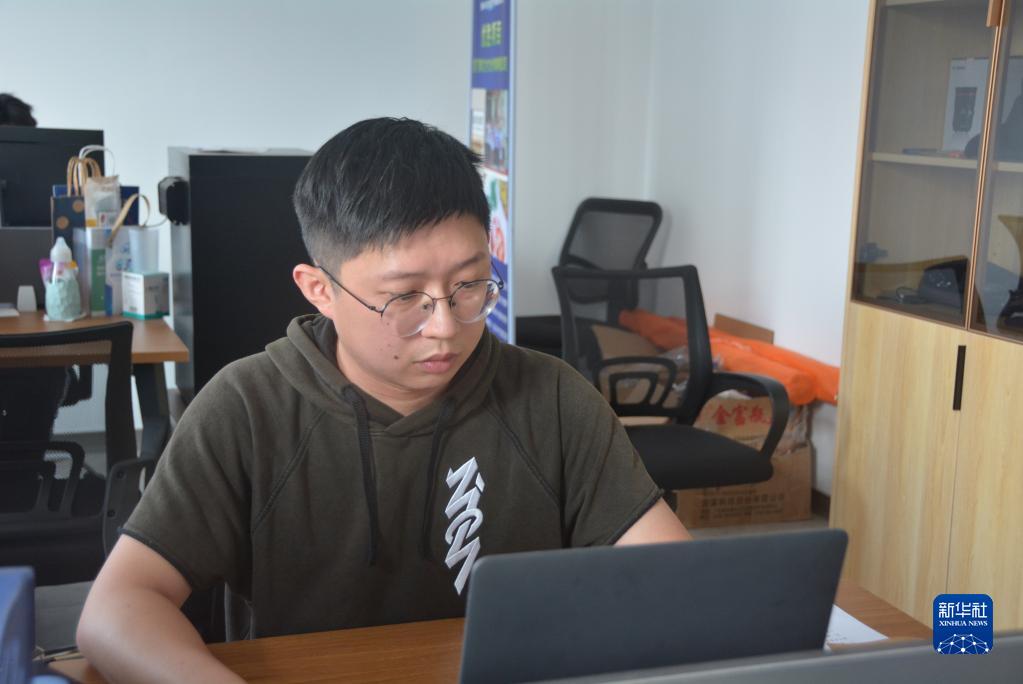 6月12日,臺青呂俊岳在工作中。新華社記者 顏之宏 攝