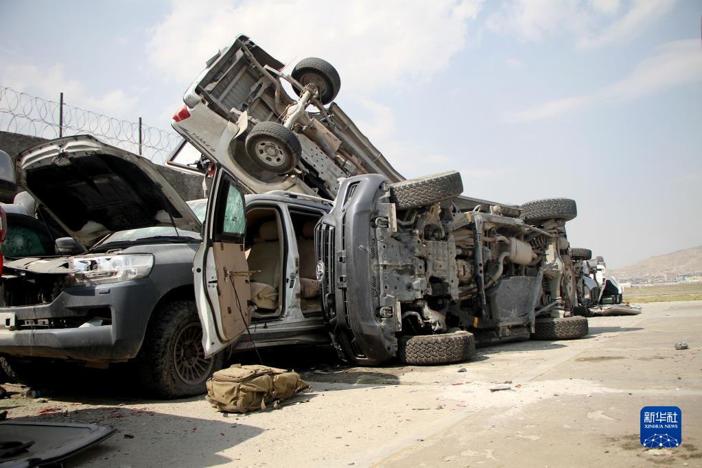 這是9月20日在阿富汗喀布爾機場(chǎng)拍攝的損毀的汽車(chē)。