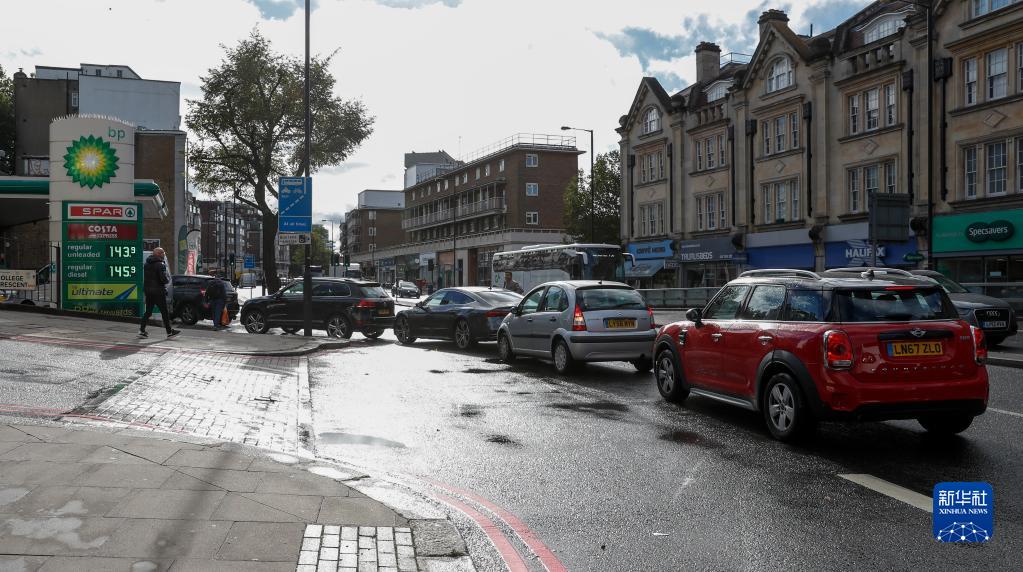 9月27日,車(chē)輛在英國倫敦一家加油站外排隊加油。