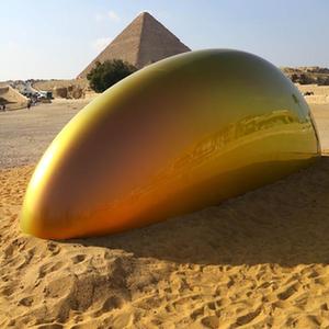 首屆金字塔國際藝術(shù)展10月21日在埃及吉薩金字塔景區開(kāi)幕,來(lái)自埃及、美國、俄羅斯等國的十余位藝術(shù)家在景區內露天展出了大型雕塑等藝術(shù)作品。