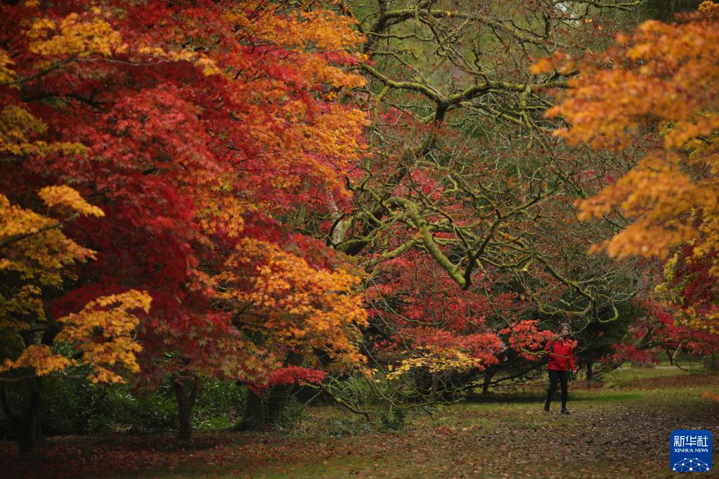 10月27日,游客在英國格洛斯特郡的韋斯頓伯特植物園欣賞秋景。