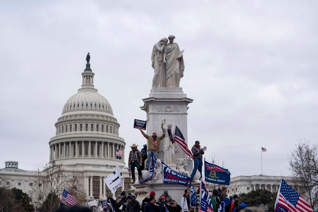 1月6日,在美國首都華盛頓,時(shí)任總統特朗普的支持者舉行示威游行,要求推翻2020年總統選舉結果。部分示威者沖入國會(huì )大廈,導致參眾兩院認證拜登當選總統的聯(lián)席會(huì )議被迫中斷。騷亂造成5人死亡。(新華社記者劉杰攝)