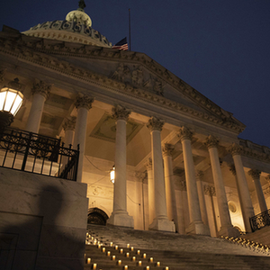 1月6日,美國首都華盛頓國會(huì )大廈降半旗、擺放蠟燭,紀念國會(huì )山騷亂事件一周年。