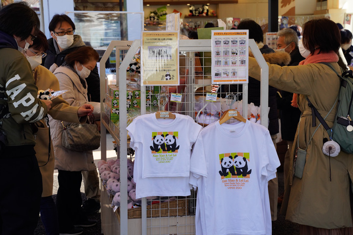 1月12日,游客在日本東京上野動(dòng)物園參觀(guān)大熊貓后選購大熊貓紀念品。新華社記者張笑宇攝