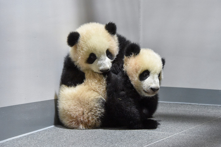 時(shí)隔半年,這對出生時(shí)只有120多克的熊貓幼崽,如今體重都已超過(guò)14公斤。據上野動(dòng)物園工作人員介紹,為了讓這對雙胞胎適應對外展出,園方提前一個(gè)月就開(kāi)始了各種準備,除了讓它們提前熟悉展室環(huán)境,還讓工作人員假扮游客在過(guò)道行走、揮手,幫助小家伙們盡快適應人們的注目。