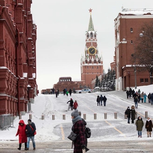 1月26日,人們從俄羅斯莫斯科紅場(chǎng)附近走過(guò)。