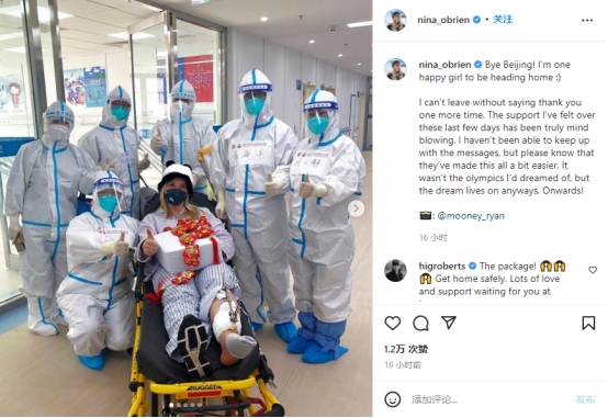 美國選手尼娜·奧布萊恩在海外社交媒體發(fā)文感謝中國醫護。(圖片來(lái)源:Instagram)