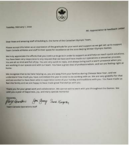 此外,加拿大奧運團隊還寫(xiě)了一封感謝信給中國冬奧工作團隊,表達他們的感激之情。信中寫(xiě)道:“我們了解,你們在中國新年期間遠離家人,來(lái)到這里幫助我們。我們也了解,為了我們,你們在今年的工作中付出了多大的努力。我們對此非常感激,也很高興能和你們一起體驗你們的節日和傳統。你們讓我們感覺(jué)像家人一樣,我們很高興和你們建立了深厚的友誼?!?/p>