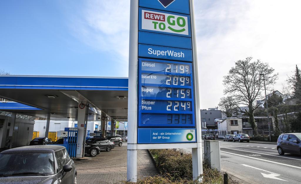 這是3月18日在德國法蘭克福拍攝的一處加油站顯示的油品價(jià)格。新華社發(fā)(阿曼多·巴巴尼攝)