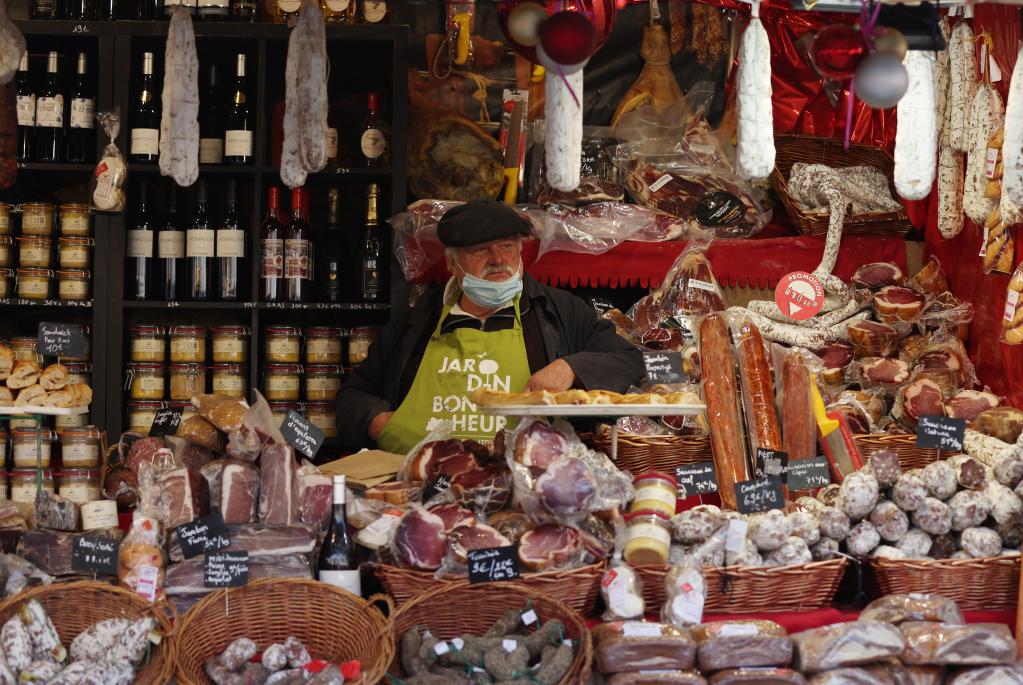 2021年12月9日,在法國巴黎的一處圣誕市場(chǎng),一名攤主在攤位前等待客人光臨。新華社記者高靜攝