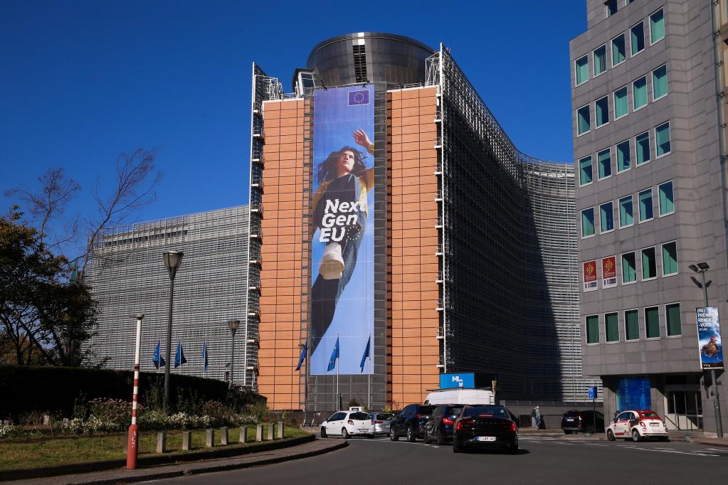 2021年10月8日,車(chē)輛經(jīng)過(guò)比利時(shí)布魯塞爾的歐盟委員會(huì )總部大廈。新華社記者鄭煥松攝