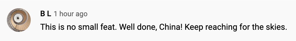 “這是非同尋常的壯舉。干得好,中國!請繼續探索宇宙吧!”