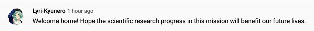 “歡迎回家!希望此次任務(wù)中的科研進(jìn)展可以造福我們的未來(lái)?!?/span>
