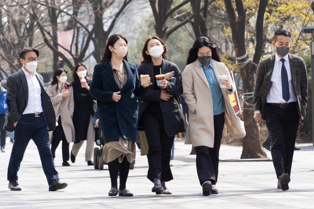 2022年3月16日,人們走在韓國首爾街頭。新華社發(fā)(李相浩攝)