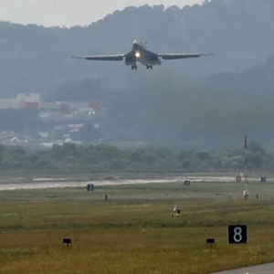 2016年9月21日,美軍B-1B轟炸機準備在美軍駐韓國烏山空軍基地著(zhù)陸。新華社/紐西斯通訊社