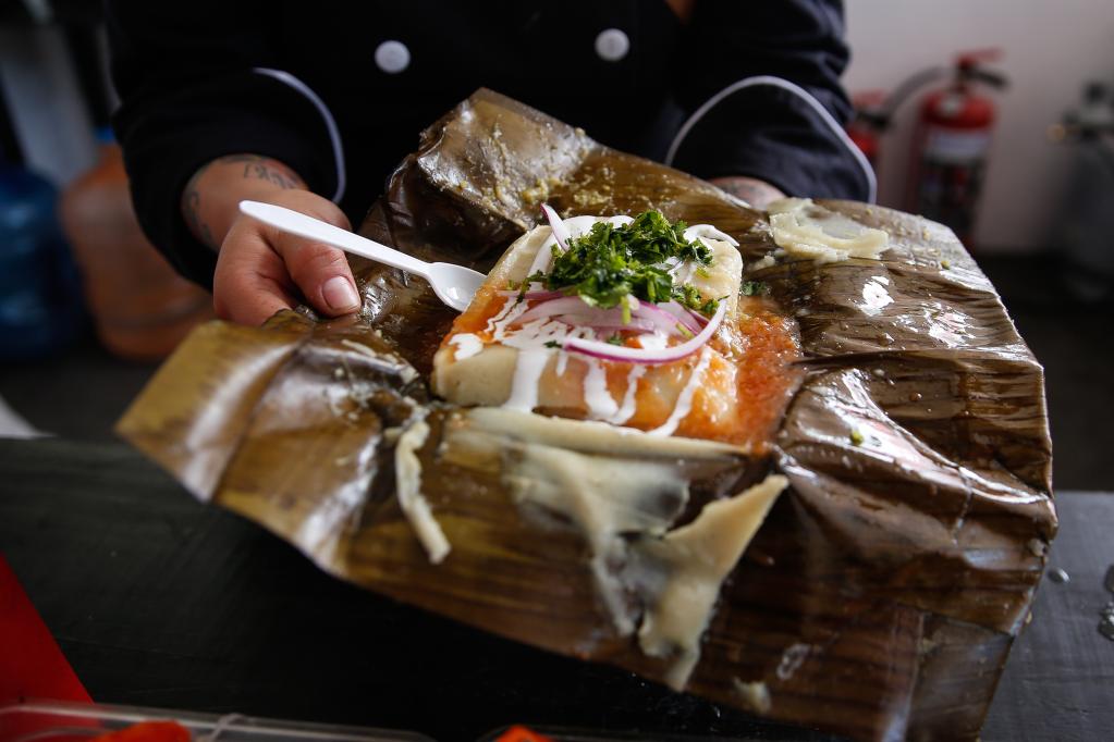 先將玉米粒磨成顆粒,再加以肉片和辣椒等餡料,最后用玉米葉或香蕉葉包裹后蒸烤,便可制作出“經(jīng)典款”塔瑪爾。從牛肉、豬肉、雞肉、兔肉、海鮮等“葷餡”,到辣椒、菠蘿、草莓等“素餡”,各式塔瑪爾甜、咸、辣口味一應俱全。