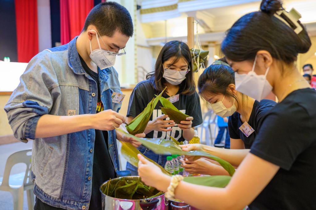 來(lái)自馬來(lái)西亞全國16支隊伍參加了“裹粽子”比賽,選手大部分是高校學(xué)生。通過(guò)制作不同口味的粽子,年輕人親身體驗著(zhù)中華美食文化。