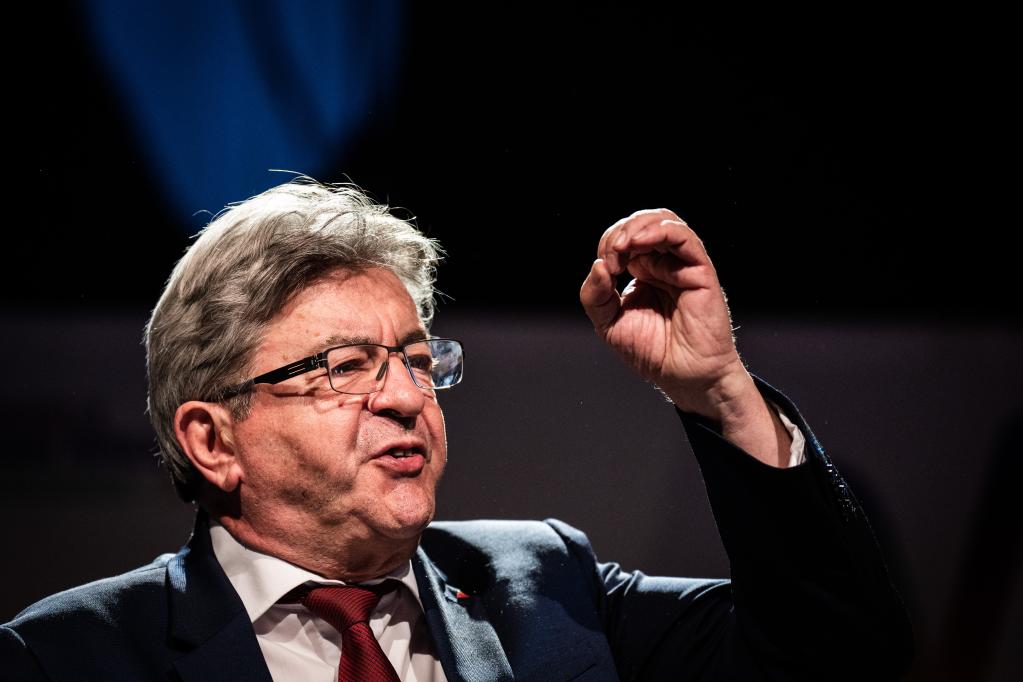 6月19日,法國極左翼政黨“不屈法國”領(lǐng)導人梅朗雄在巴黎舉行的選后集會(huì )上講話(huà)。(新華社發(fā),何塞·博薩斯攝)