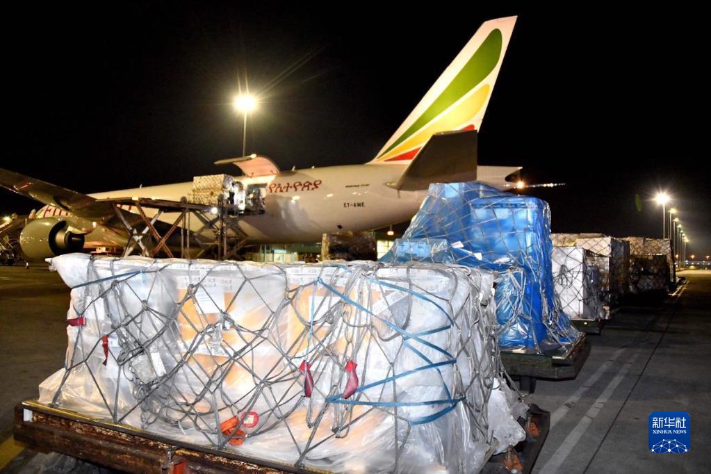 2020年4月14日,中國援助的抗疫物資抵達南非約翰內斯堡奧坦博國際機場(chǎng)。新華社發(fā)(中國駐南非大使館供圖)