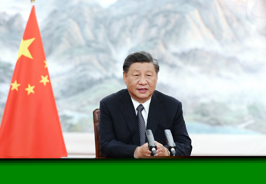 6月22日晚,國家主席習近平以視頻方式出席金磚國家工商論壇開(kāi)幕式并發(fā)表題為《把握時(shí)代潮流 締造光明未來(lái)》的主旨演講。新華社記者 鞠鵬 攝
