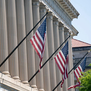 這是4月28日在美國華盛頓拍攝的美國商務(wù)部大樓。(新華社記者劉杰攝)