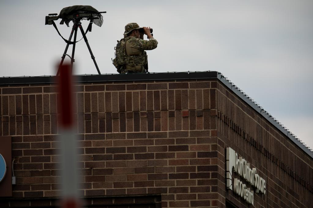 7月4日,一名狙擊手在美國伊利諾伊州海蘭帕克市警戒監視。新華社發(fā)(文森特·約翰遜攝)