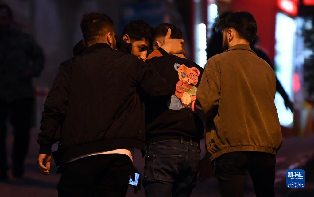 11月13日,在土耳其伊斯坦布爾市中心塔克西姆廣場(chǎng)邊上的獨立大街,幾名青年互相安慰。