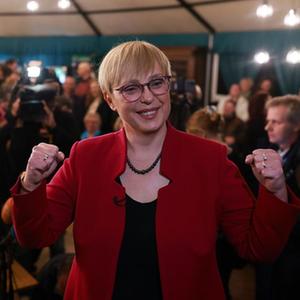 11月13日,在斯洛文尼亞盧布爾雅那,娜塔莎·皮爾茨·穆薩爾在選舉結果公布后慶祝當選。