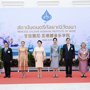 當地時(shí)間11月19日上午,國家主席習近平夫人彭麗媛在泰國總理夫人娜拉蓬陪同下參觀(guān)甘拉雅尼音樂(lè )學(xué)院。這是彭麗媛抵達時(shí),娜拉蓬等熱情迎接。