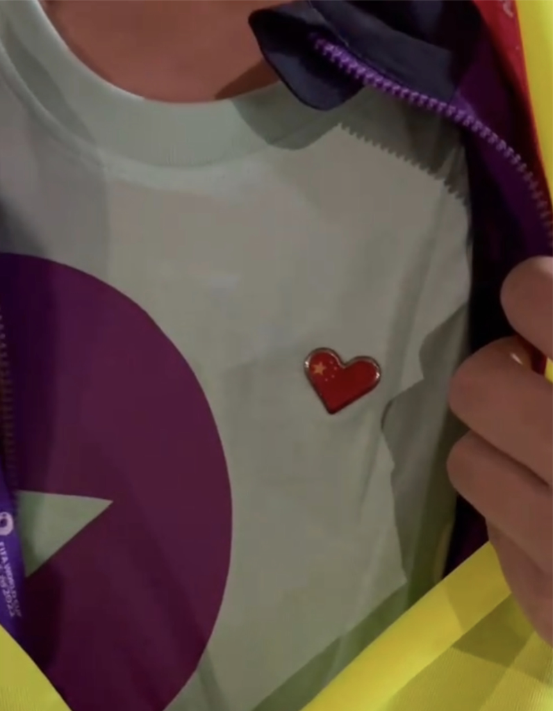 都別著(zhù)一枚本屆世界杯志愿者專(zhuān)屬徽章