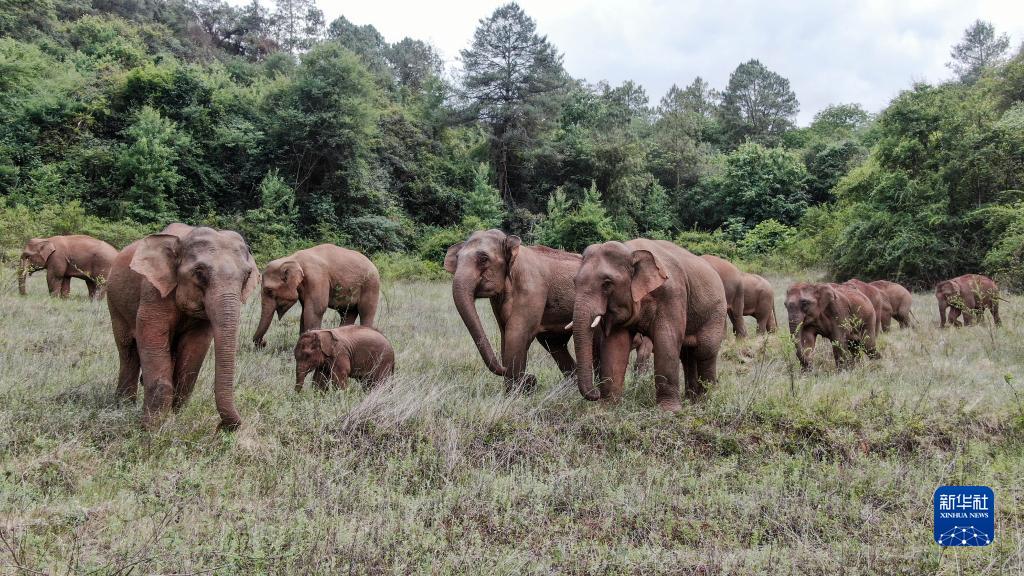 2021年6月3日在昆明市晉寧區雙河彝族鄉拍攝的野象(無(wú)人機照片)。新華社發(fā)