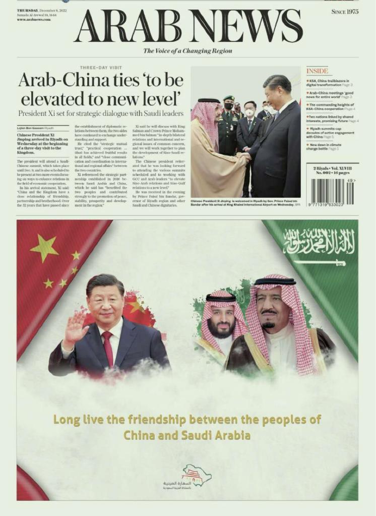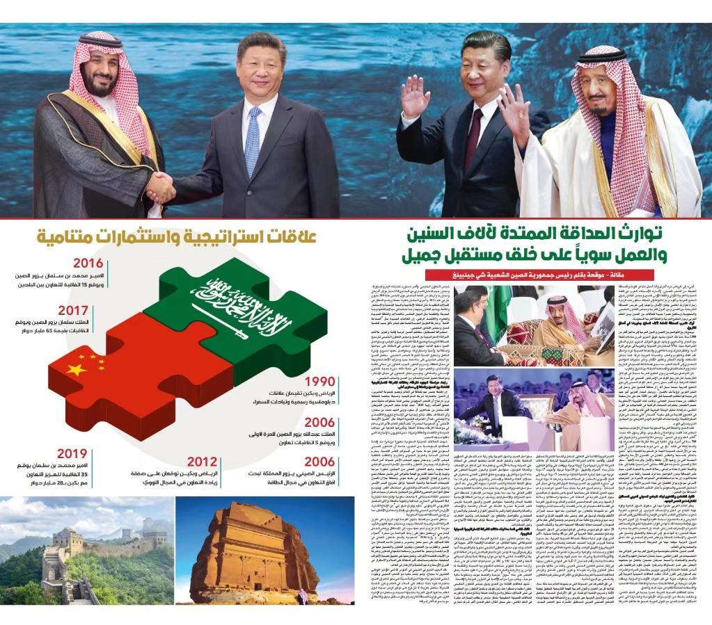 《利雅得報》和《阿拉伯新聞報》均推出多個(gè)版面,對沙中兩國關(guān)系以及沙中合作成就進(jìn)行報道和梳理。