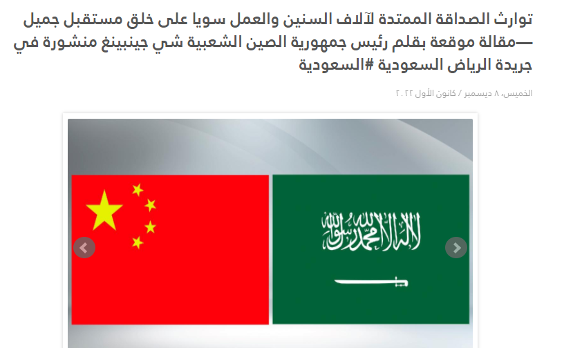 “帶著(zhù)中國人民的深情厚誼,我再次來(lái)到利雅得,”習近平主席在署名文章開(kāi)篇寫(xiě)道。
