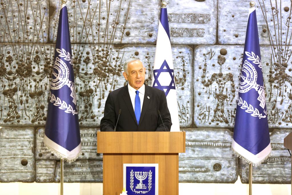 11月13日,內塔尼亞胡在以色列總統府舉行的組建新政府授權儀式上發(fā)表講話(huà)。(新華社記者王卓倫攝)