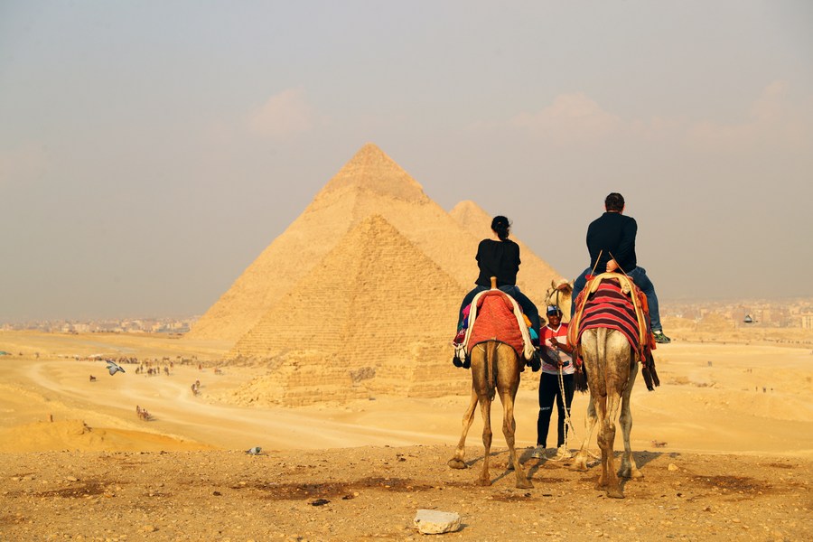 2022年12月22日,游客在埃及吉薩金字塔景區游覽。埃及已進(jìn)入冬季旅游旺季。(新華社記者隋先凱攝)