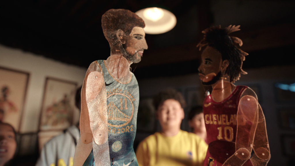 為村里的老戲迷們表演了一場(chǎng)籃球主題的皮影戲