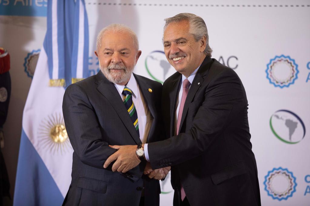 1月24日,在阿根廷布宜諾斯艾利斯舉行的拉美和加勒比國家共同體第七屆峰會(huì )歡迎儀式上,巴西總統盧拉(左)與阿根廷總統費爾南德斯合影。新華社發(fā)(馬丁·薩巴拉攝)