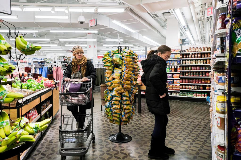 1月12日,顧客在美國紐約一家超市購物。(新華社發(fā),朱子于 攝)