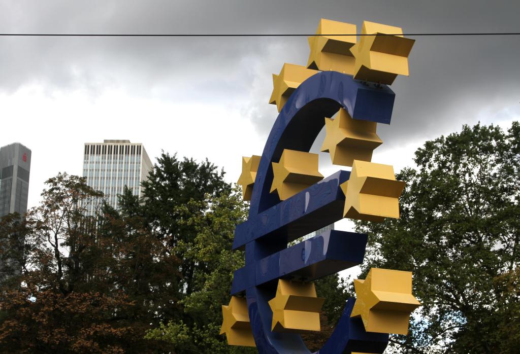 這是2022年9月8日在德國法蘭克福拍攝的歐元雕塑。(新華社記者單瑋怡攝)