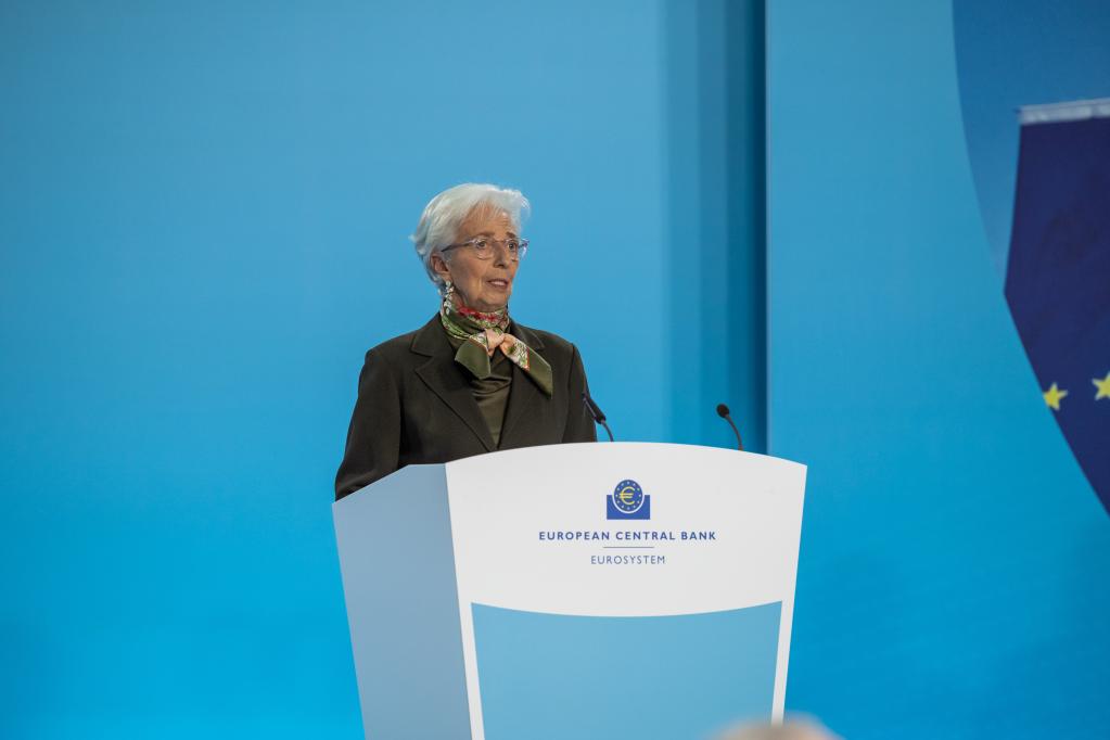 2023年2月2日,在位于德國法蘭克福的歐洲央行總部,歐洲中央銀行行長(cháng)拉加德在新聞發(fā)布會(huì )上講話(huà)。(新華社發(fā),歐洲央行供圖)
