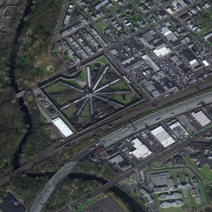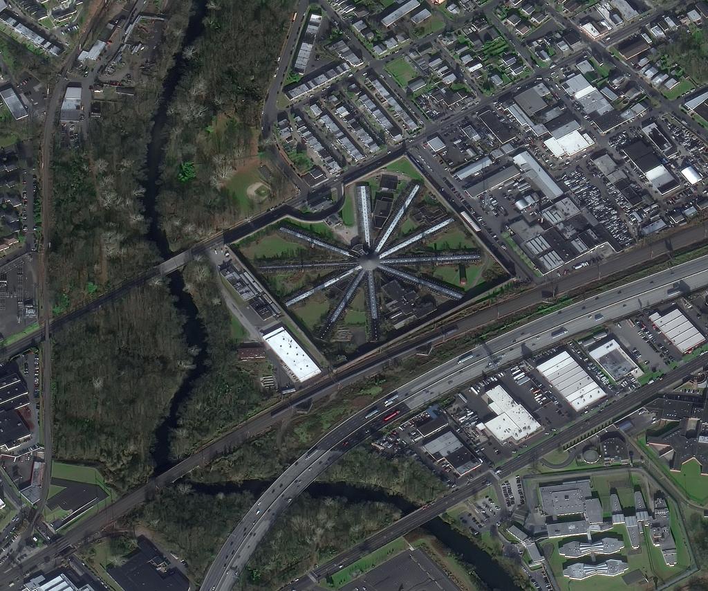 圖為2021年拍攝的美國費城霍姆斯伯格監獄的衛星遙感影像。