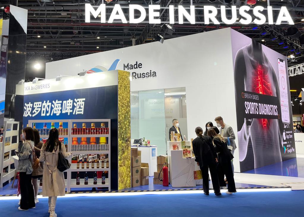 2022年11月6日在第五屆進(jìn)博會(huì )上拍攝的俄羅斯產(chǎn)品展區。新華社記者鄭冬睿攝