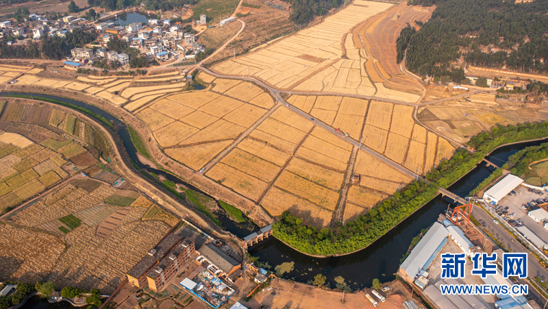航拍鏡頭下的麥田。新華網(wǎng) 趙普凡 攝
