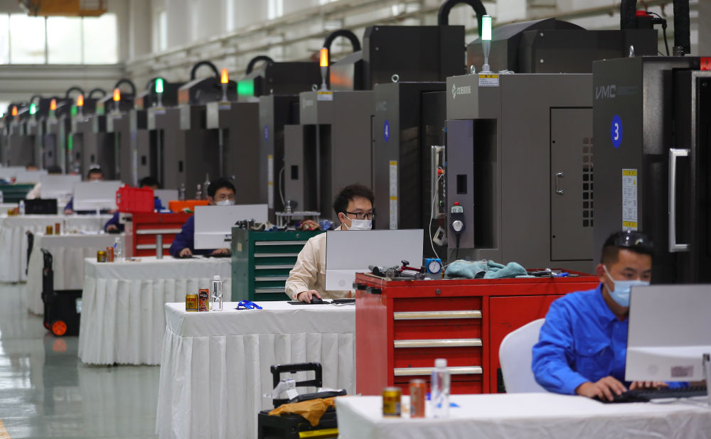 參賽選手在在2022“一帶一路”暨金磚國家技能發(fā)展與技術(shù)創(chuàng )新之“通用技術(shù)杯”數控多軸加工大賽中比拼(2022年11月10日攝)。新華社記者 楊青 攝