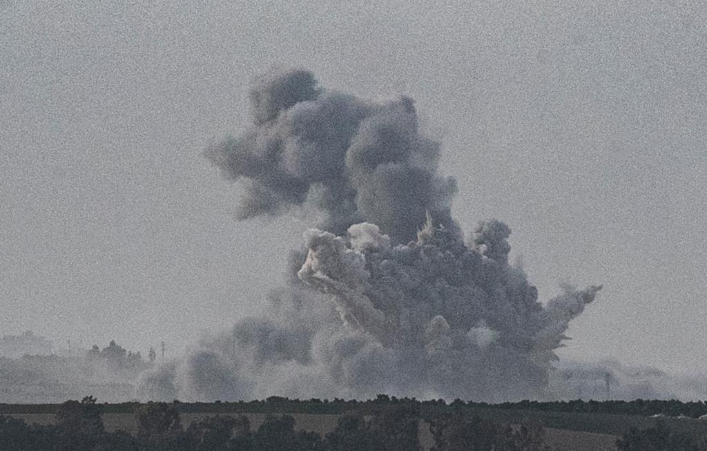 這張10月29日在加沙邊境以色列一側拍攝的照片顯示,加沙地帶北部區域被以軍襲擊后升起濃煙。新華社記者陳君清攝